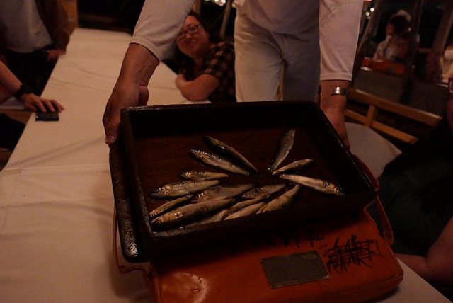 結束後,鵜匠會把當晚的戰利品展示給遊客看,不過這些香魚並不是很大隻。