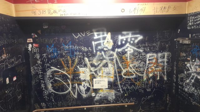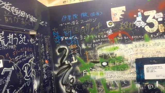 後樂園會館的樓梯 牆壁上有許多打贏的打輸的留下來的留言