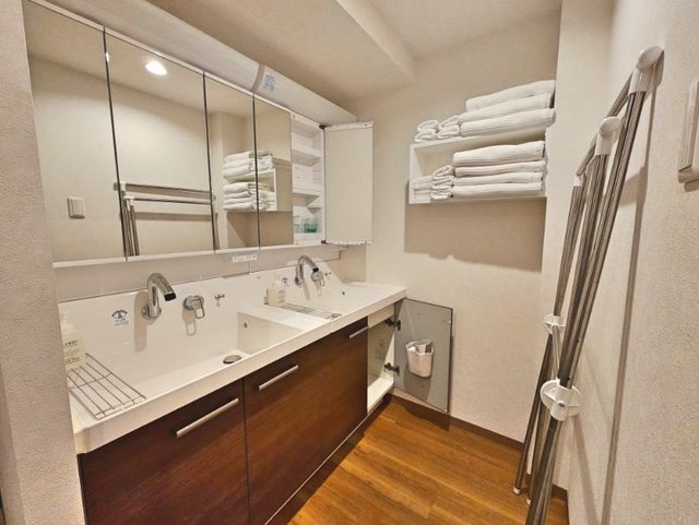 洗手台的設計也完全考慮到多人使用,