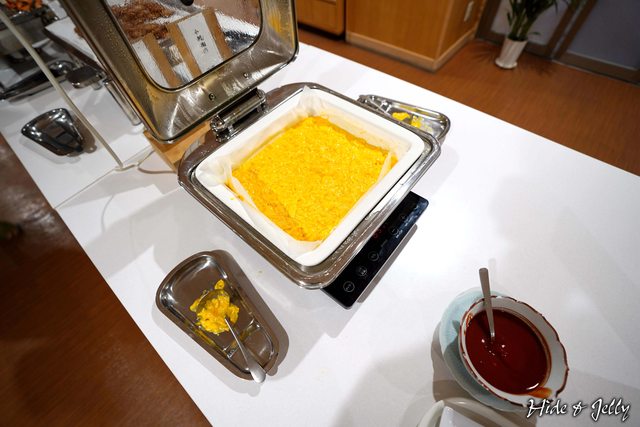早餐部分則採用全自助餐,配菜有炒青菜、吻仔魚、明太子、玉子燒等。