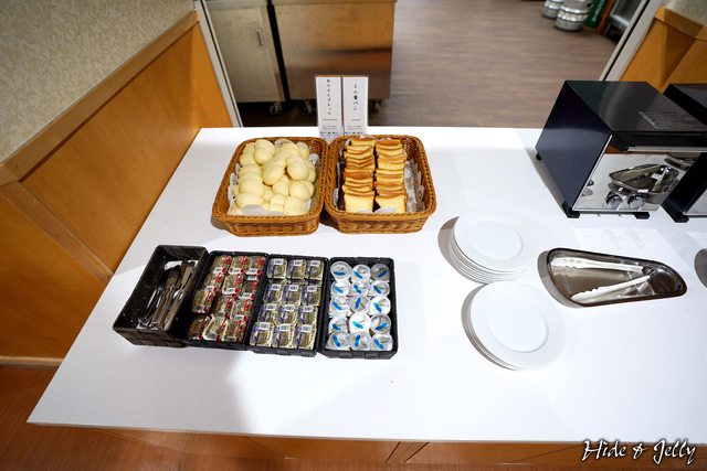 還有兩種麵包,搭配奶油與兩種果醬,一旁還有烤麵包機可以使用。