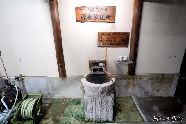 門口還有自家泉源的飲泉所,湧出量一分鐘200公升,也是相當驚人。65度的源泉,喝起