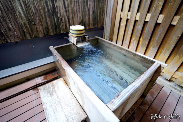 這房型的重點,當然就是陽台上的風呂囉!剛好可以塞下兩個人的木浴桶,與一進門就聽