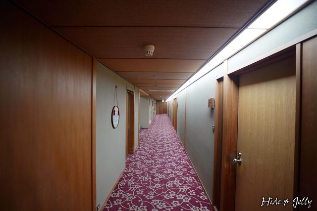 電梯上三樓後,看到長長的走廊,兩旁都有房間,但這不是我們房間的所在。