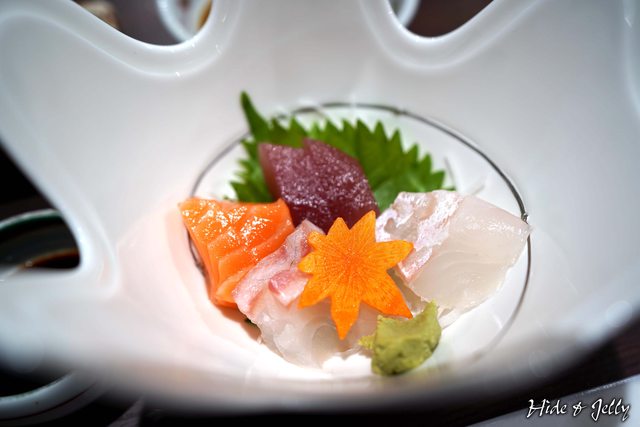 四種生魚片刺身,新鮮、份量也適中,只差如果芥末的部分不是調和芥末,是本芥末就更