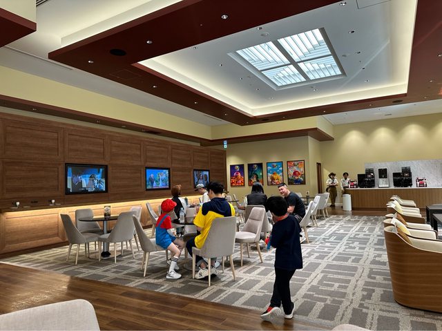 室,可以在這買馬力歐手環免排隊,然後稍作休息等導遊來,裡面有各式飲料及礦泉水可