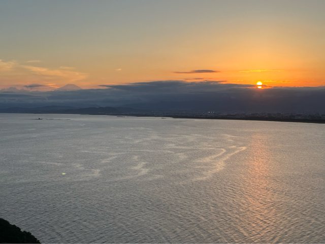 再登上燈塔欣賞夕陽,結果夕陽及富士山都被厚厚的雲層遮住了。