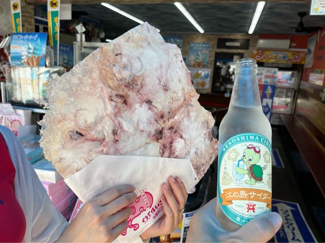 排隊買大章魚仙貝(1,100円)及飲料。