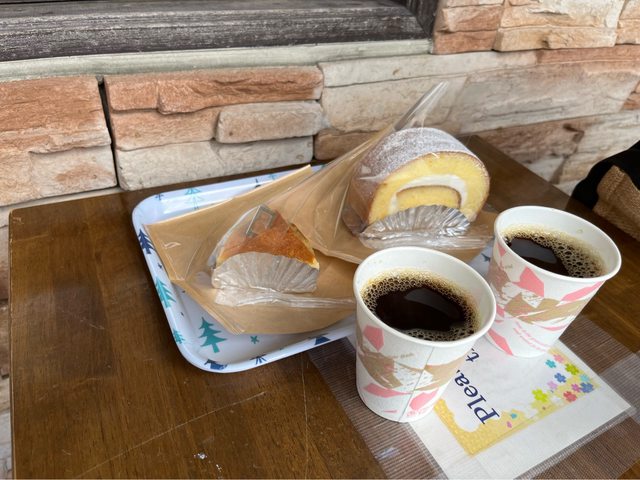 下船後在附近店家逛逛。買了兩塊蛋糕(1,000円)搭配咖啡。