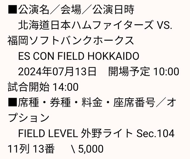標題[讓售] 7/13火腿vs軟銀右外野門票一張