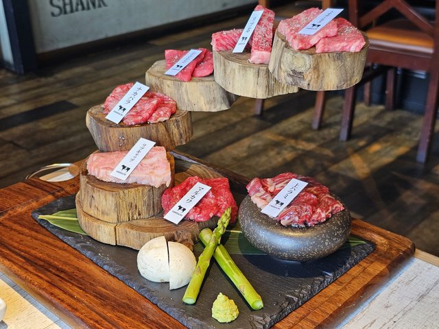 不太確定有哪些部位,字面上應該有腿肉和橫隔膜吧,看到那個油花有多好吃不必多說,吃