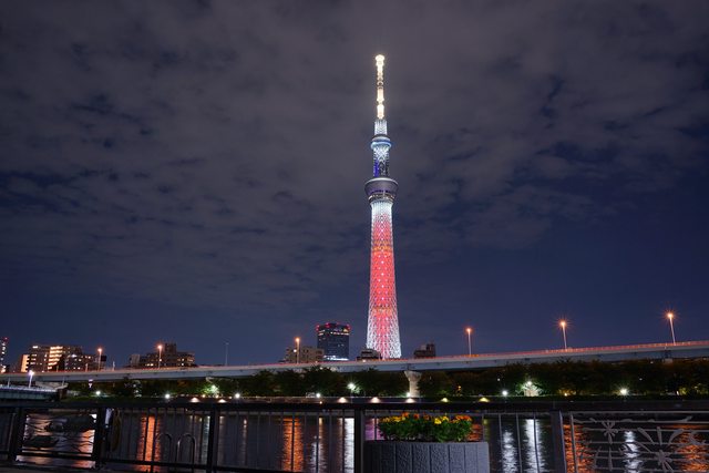 一路散步到隅田川河畔,用晴空塔的夜景結束這天。