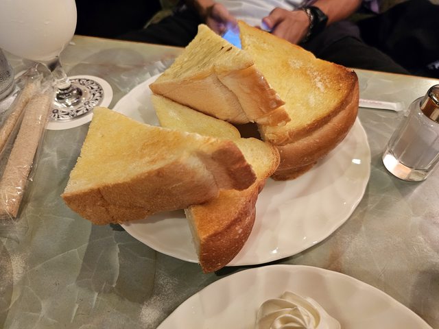 和友人點了普通燒吐司套餐(650羊)和厚燒吐司套餐(700羊),