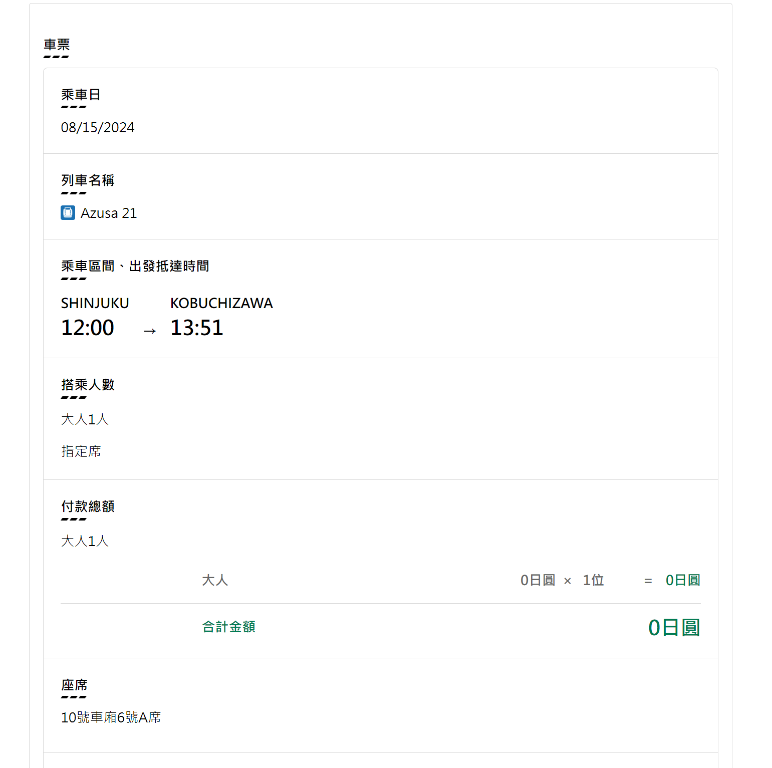 → a0913 : あずさ60号 20:33發車 07/16 12:28