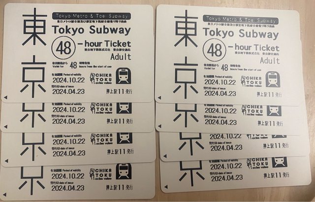 1. 讓售品項:東京地鐵48小時乘車券*4張,使用期限至2024/10/22(可零售)