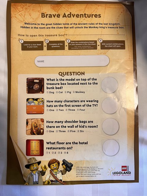樂高樂園飯店的房間有分好幾種主題,例如海盜、國王、探險、忍者之類的,我是直
