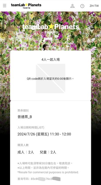 標題[讓售] teamLab Planets Tokyo門票4張 可指定日