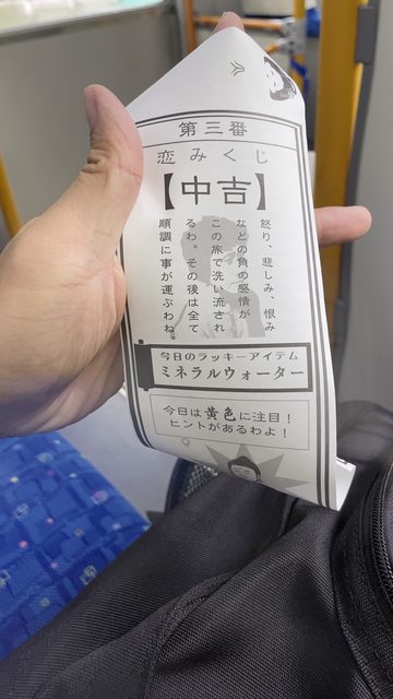 本次旅行運勢「把不好的負面感情,透過這趟旅行把這些全部洗刷乾淨後之後會一切順利」