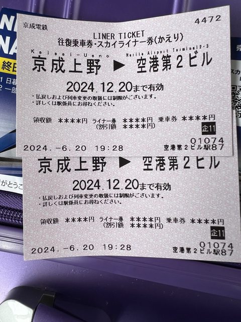 1.讓售品項:2張skyliner上野到成田機場單程兌換卷,期限到2024/12/20