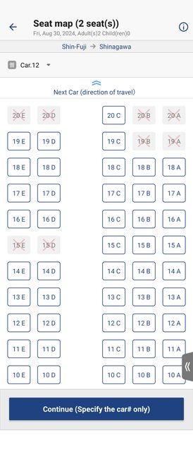 3.不能進座位圖選位,只有在乘車日前1個月以E-mail通知