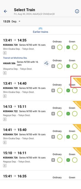 乗車日の1ヵ月前の8:00以降に順次処理を行い、列車番号、発着時刻、座席番号を確定
