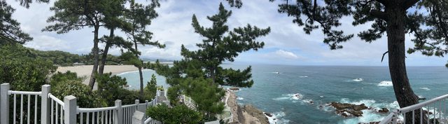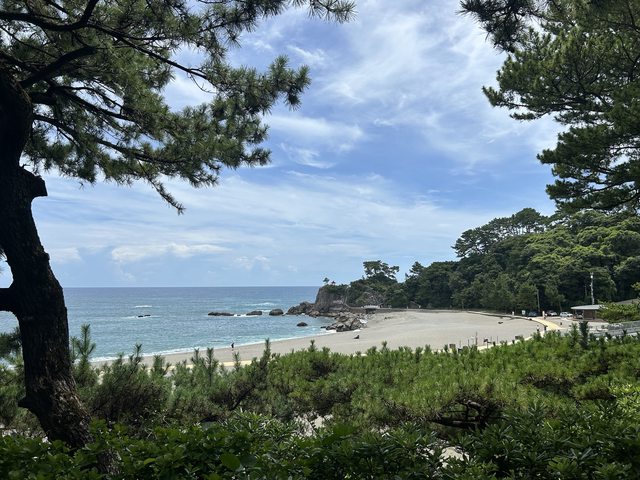 我選擇的是能順便經過海津見神社(龍王宮)的路線,神社位在海崖上,能夠眺望桂濱