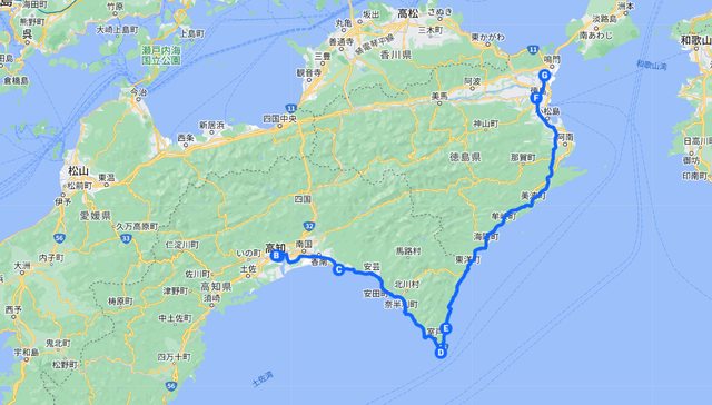 之後我遇到了難題,要直接走高速公路經香川再到徳島,還是沿著濱海的國道一路走到