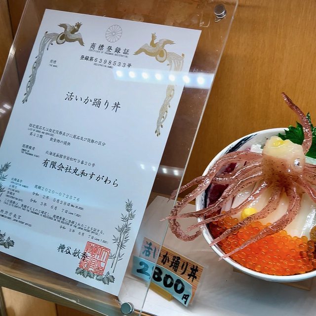 販售類似的生烏賊生魚片,但跳舞烏賊丼飯只有這裡有賣,在早晨的函館品嚐新鮮的生烏