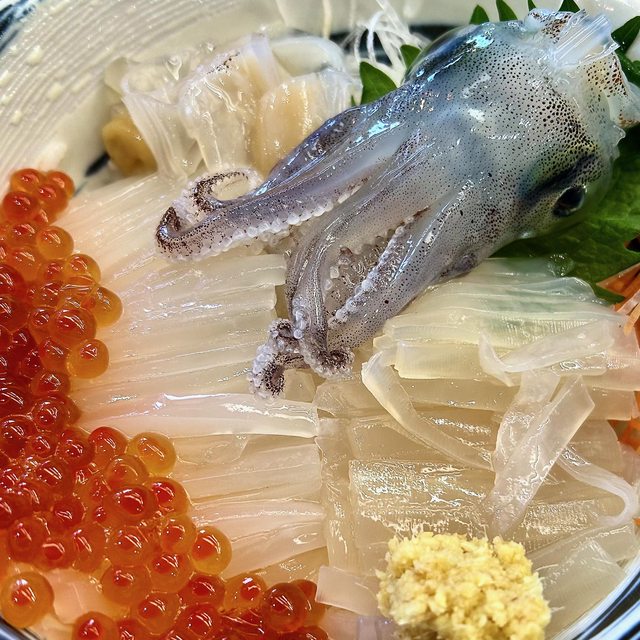 ,一旁的鮭魚卵只能作為配角,完全敵不過新鮮活烏賊在這碗丼飯內的主角氛圍