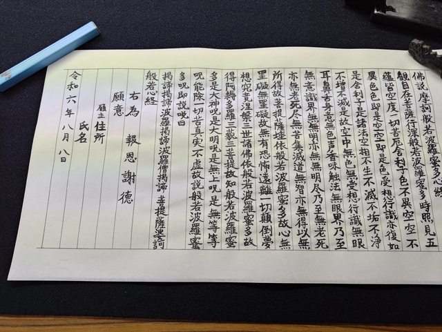 櫃檯知道我是台灣來的,還說台灣的大家都抄心經