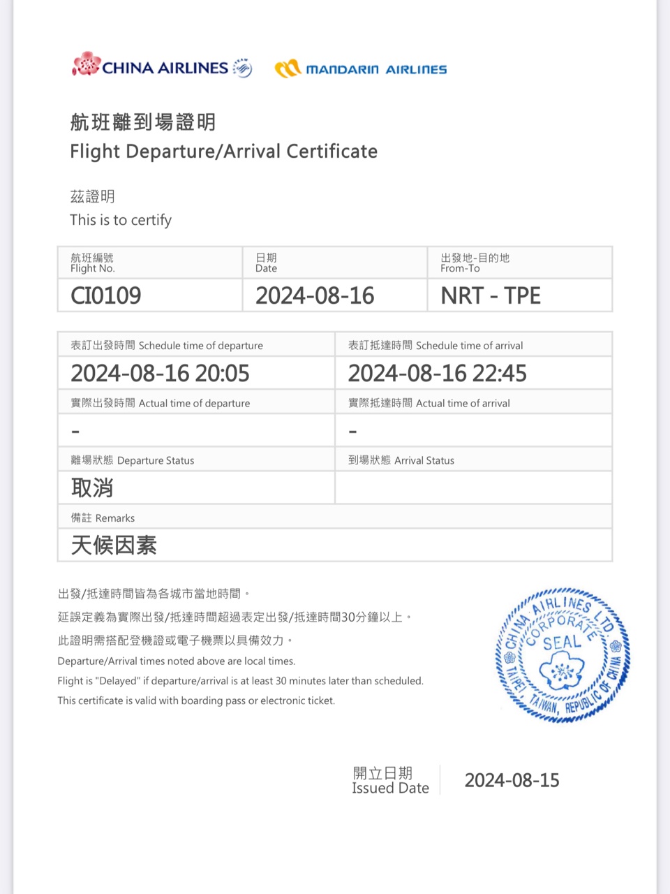 → lookair : 8/16 CI109官網顯示取消 可以下載證明文件了 08/15 16:42
