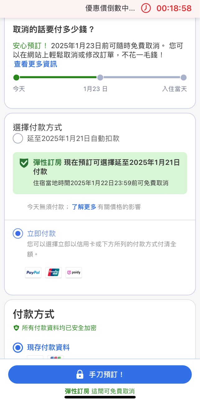 → owowowo : 我也是最近訂房,也免費全額退費,在刷卡前可以確 08/22 13:07