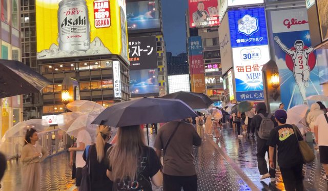 這時候風雨都開始變小了,颱風天走在這樣的大阪,也是很難忘了