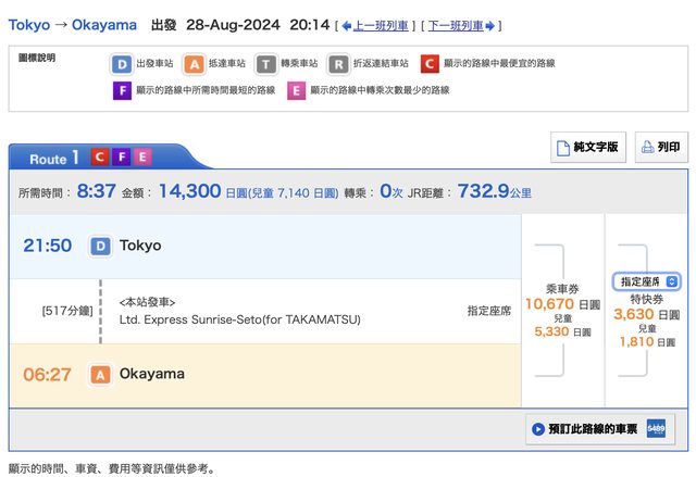 → Kapenza : 東京到岡山特快券費3630 這部分兩個試算是相同基礎 08/28 22:23