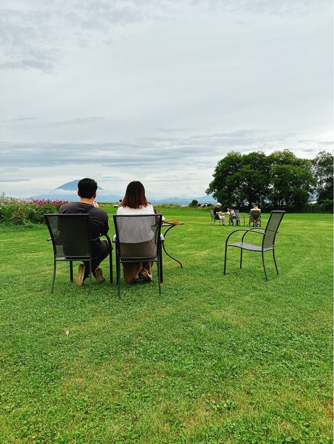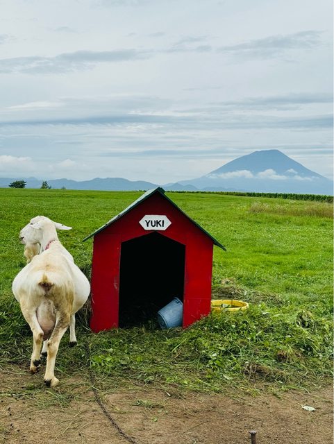 很舒服的地方,吃吃pizza跟冰淇淋,還有喝他們的牛奶,坐在草地上遠眺羊蹄山,現場