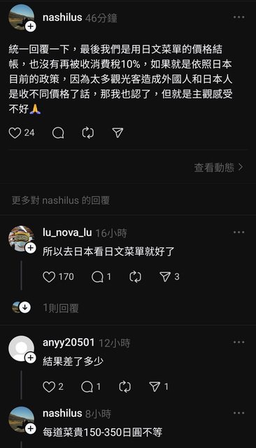 → sugaryeh000 : 比其他同樣日本人多付錢吃飯合理嗎?貴就貴在你歧 09/03 12:29
