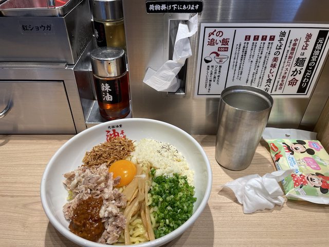 傍晚看了地圖選了評價很高的元祖油堂,這是辣味噌油麵C(1300日圓,我用Suica結)