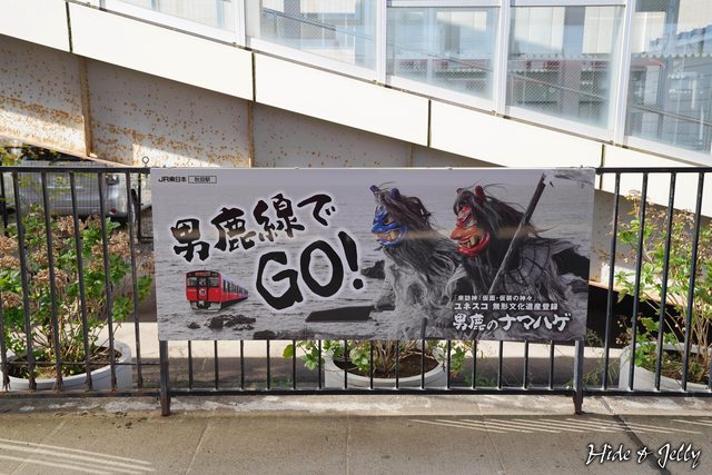 搭乘「JR男鹿線」,看到月台上掛著生剝鬼,就知道沒有走錯月台了。