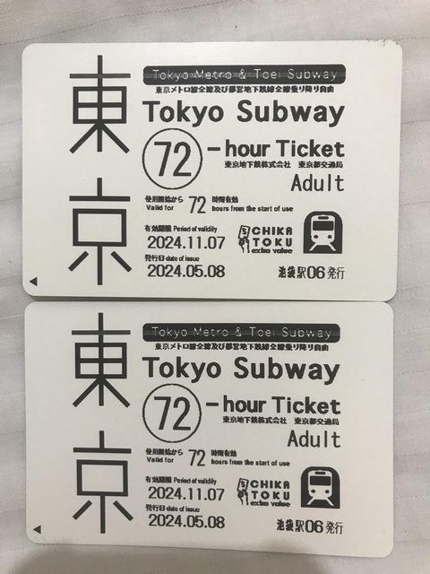 1. 讓售品項:東京地鐵72小時兩張