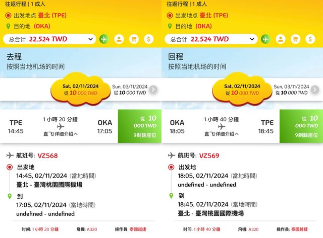 泰越捷台北沖繩又放促銷票