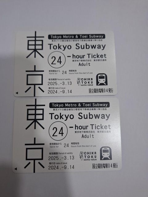 標題[讓售] Tokyo Subway Ticket 24小時實體券 2張