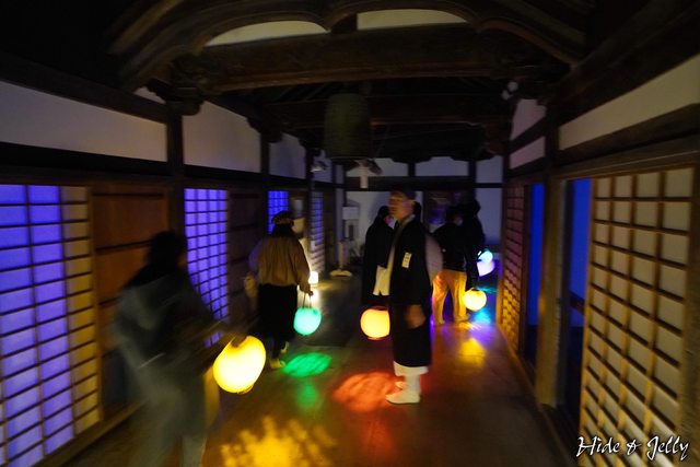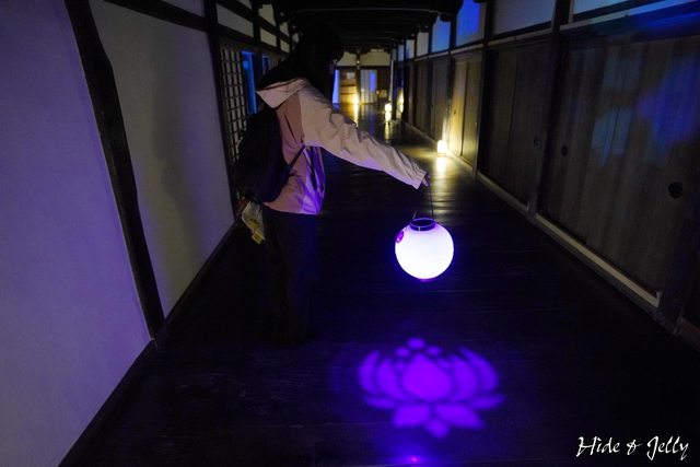 提著提燈走在本堂的迴廊真的很有氣氛,提燈還可以向地面投射出蓮花的圖案,太美了!