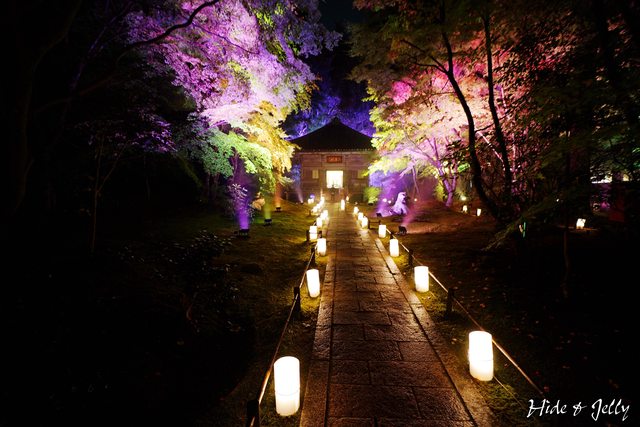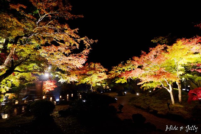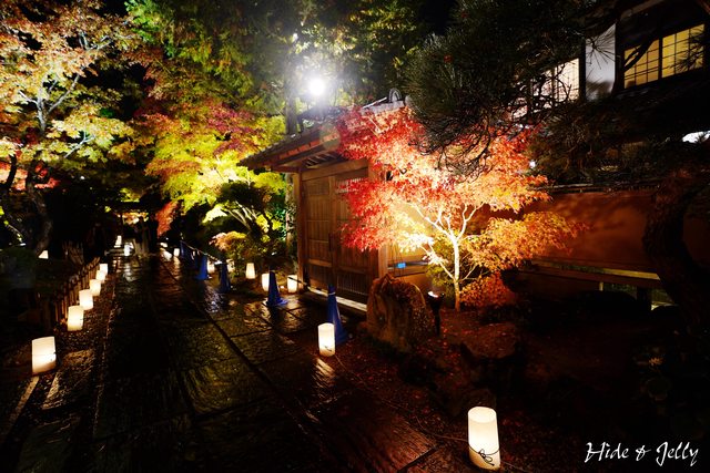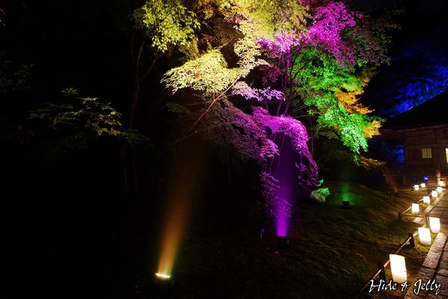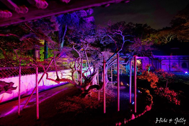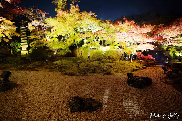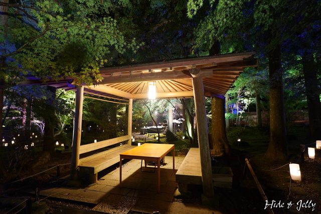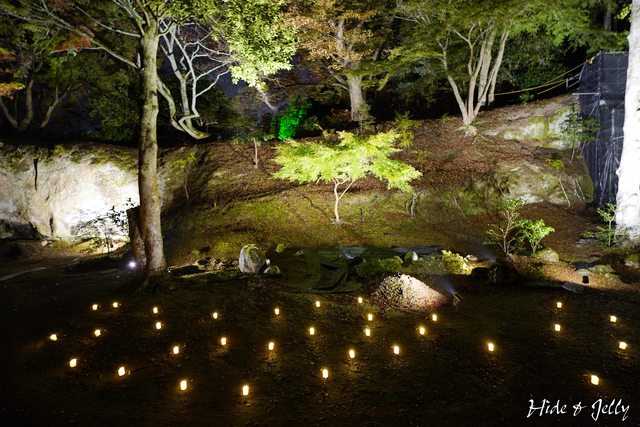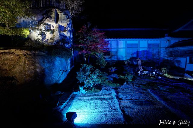 本堂後庭園,地上也擺放著LED燭燈,雖然中央的小楓樹也還沒轉紅,但氣氛營造得很棒