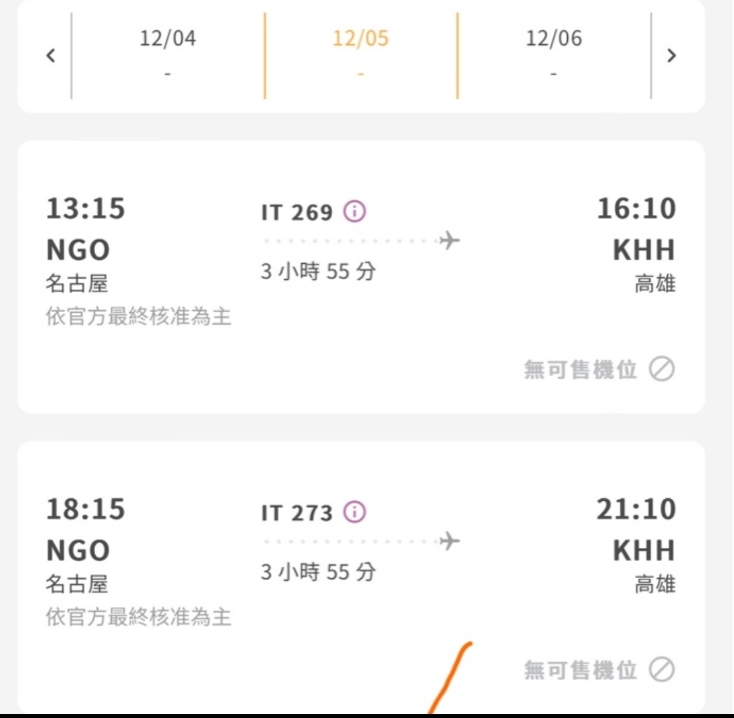 → info1994 : 高雄飛名古屋應該IT268吧 怎麼是27309/20 14:59