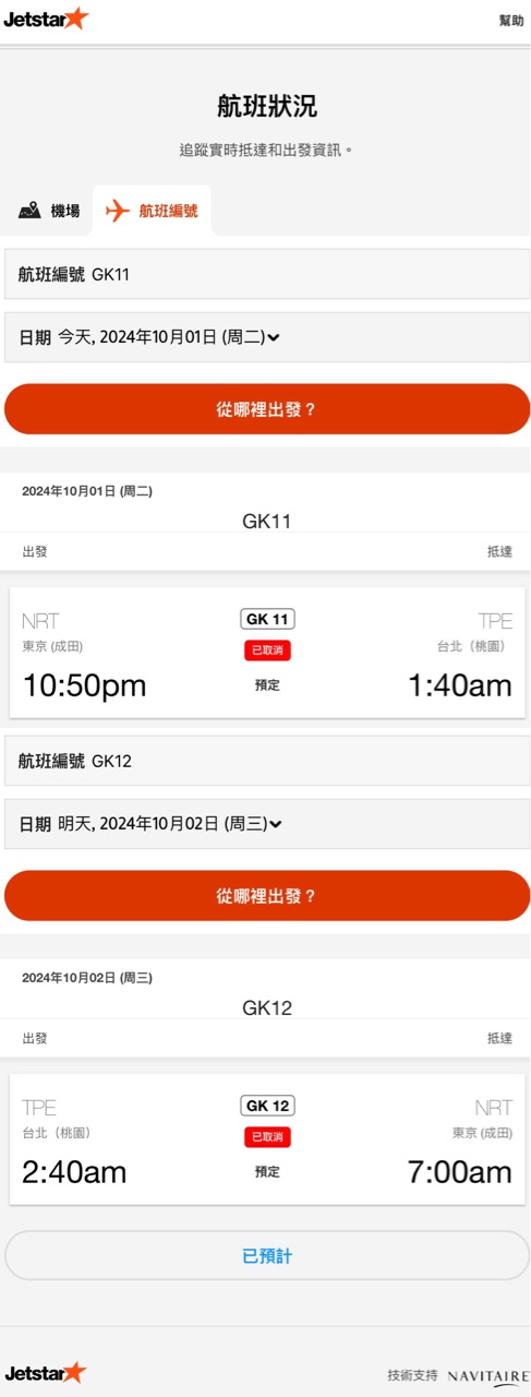 推 tcayla : 剛收到捷星10/3 2:40飛成田取消了 10/01 20:54