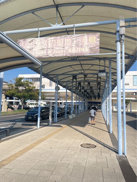 到達兒島站後出站後就可以看到掛在空中的牛仔褲