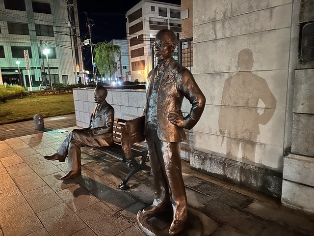 肉包不大但甜甜軟軟嫩嫩好吃 在這邊遇到一個阿姨聽到是台灣人就很開心一直說有看到台灣IT大臣很聰明 買完肉包後開車一小段路到佐賀城 城外迎接我們的是昔日佐賀藩藩主的鍋島直正銅像