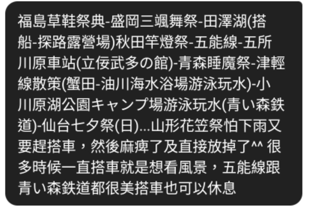 → gioneone : 獨行一次帶朋友,路線走的是長岡大花火>秋田竿燈祭 10/06 23:42