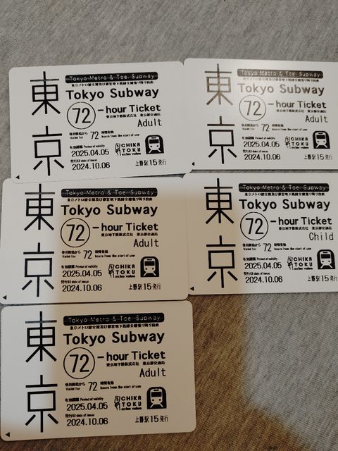 標題[讓售] 東京地鐵72小時 4大一小