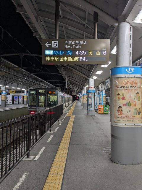 使用日第一天,早上3:30起床,搭乘4:35首班Marine Liner要去岡山拍瀨戶出雲號解聯